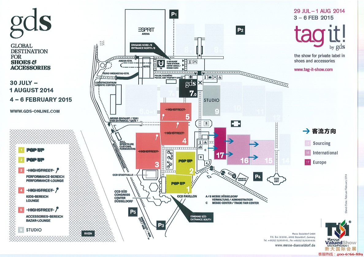 展会特色:1、 TAG IT是目前全世界规模较大的专业性时尚鞋、服装及箱包展。TAG IT展连同美国WSA@MAGIC,意大利GARDA展一起,合称世界三大专业展; 2、组委会将时间调整到8月底,避开欧洲买家的休假时间,以利于买家到会进行采购; 3、展会期间将开通与GALLERY展间的SHUTTEL BUS无缝对接两个专业展会,共享买家资源。